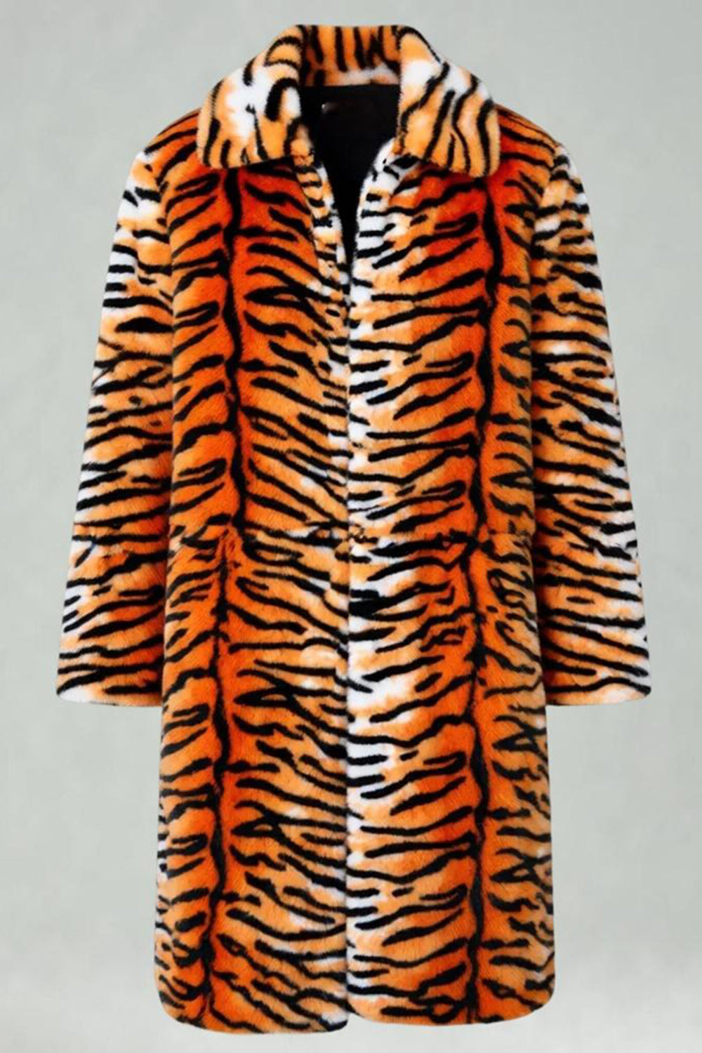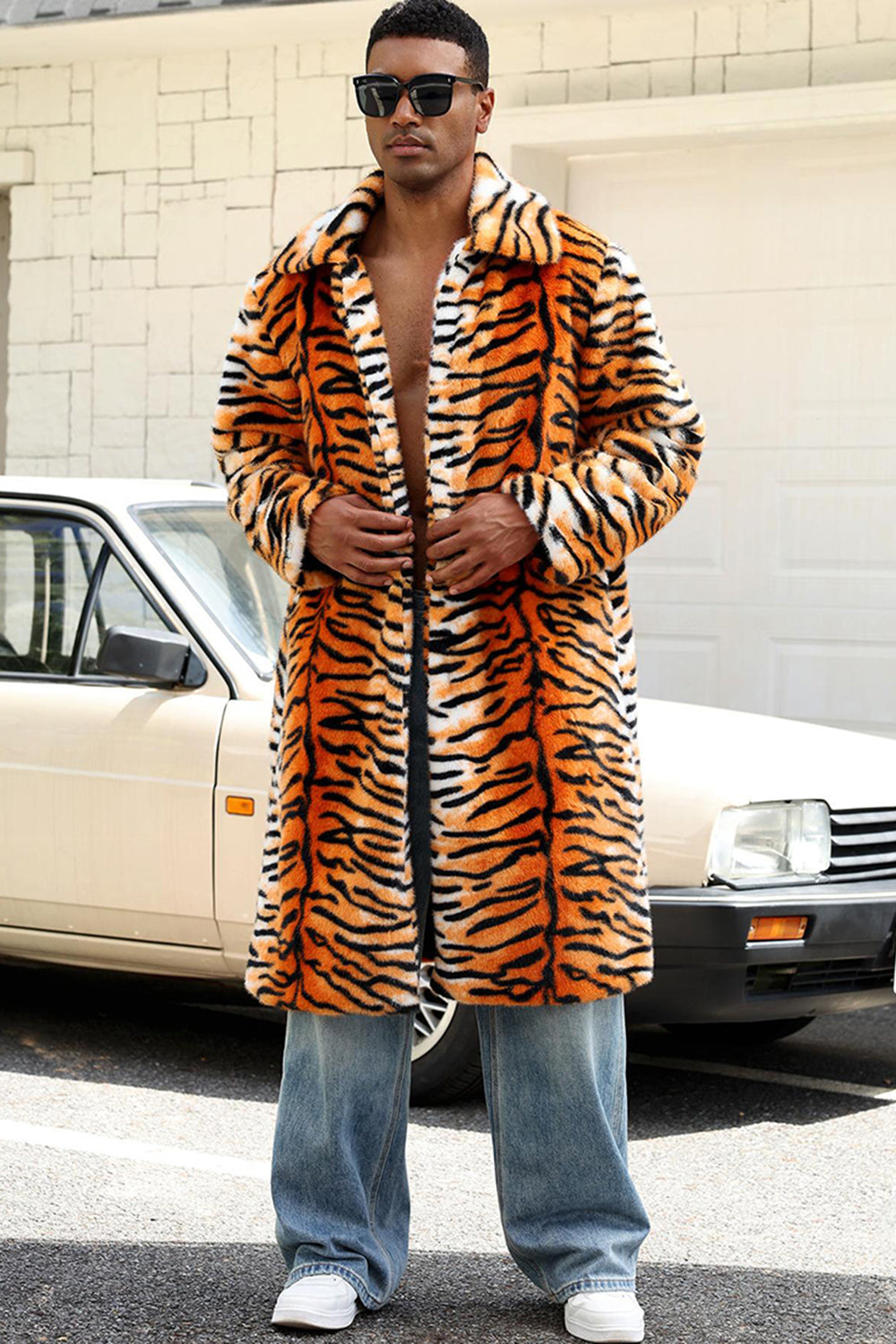 Abrigo largo de piel sintética para hombres, cuello abierto en la parte delantera amarillo
