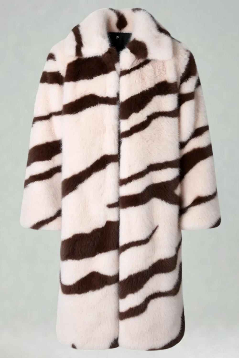 Cebras de albaricoque de piel sintética abierta delante Abrigo largo de hombre