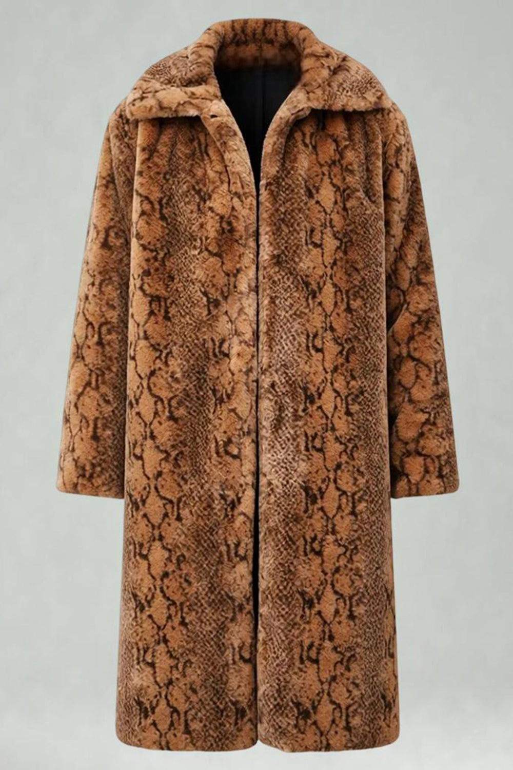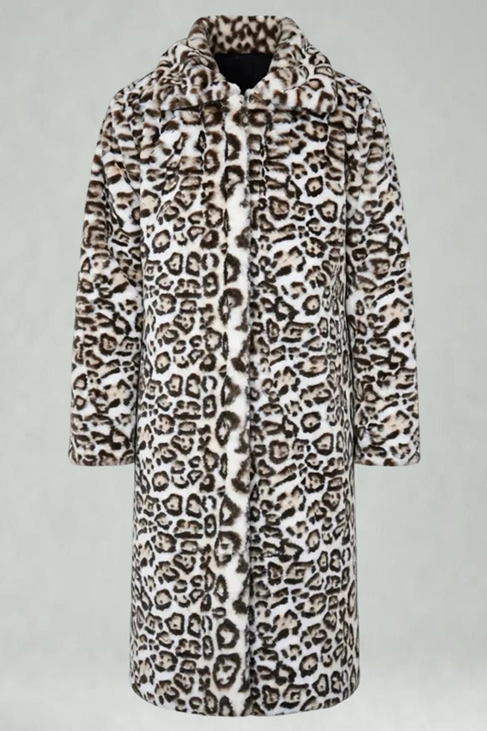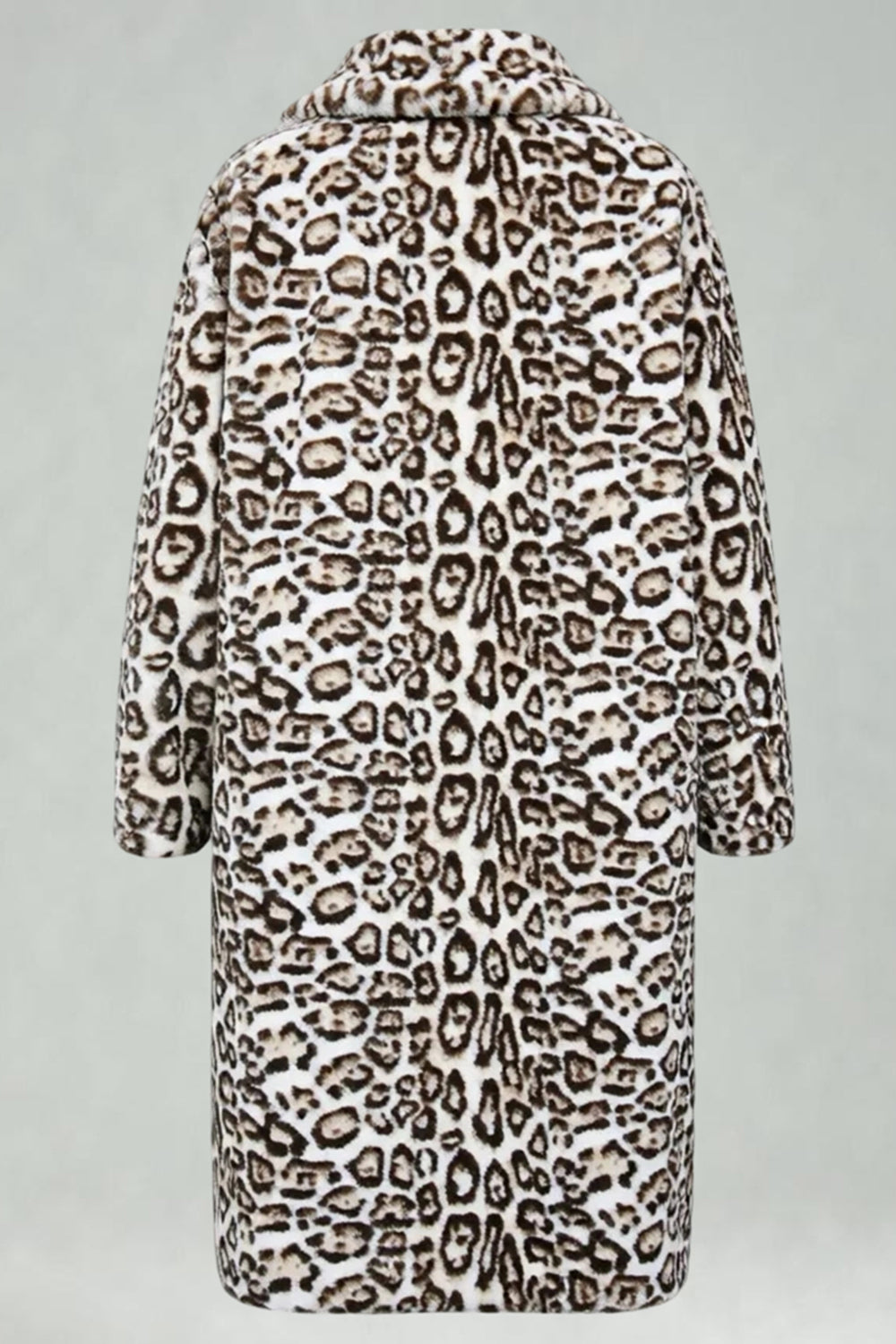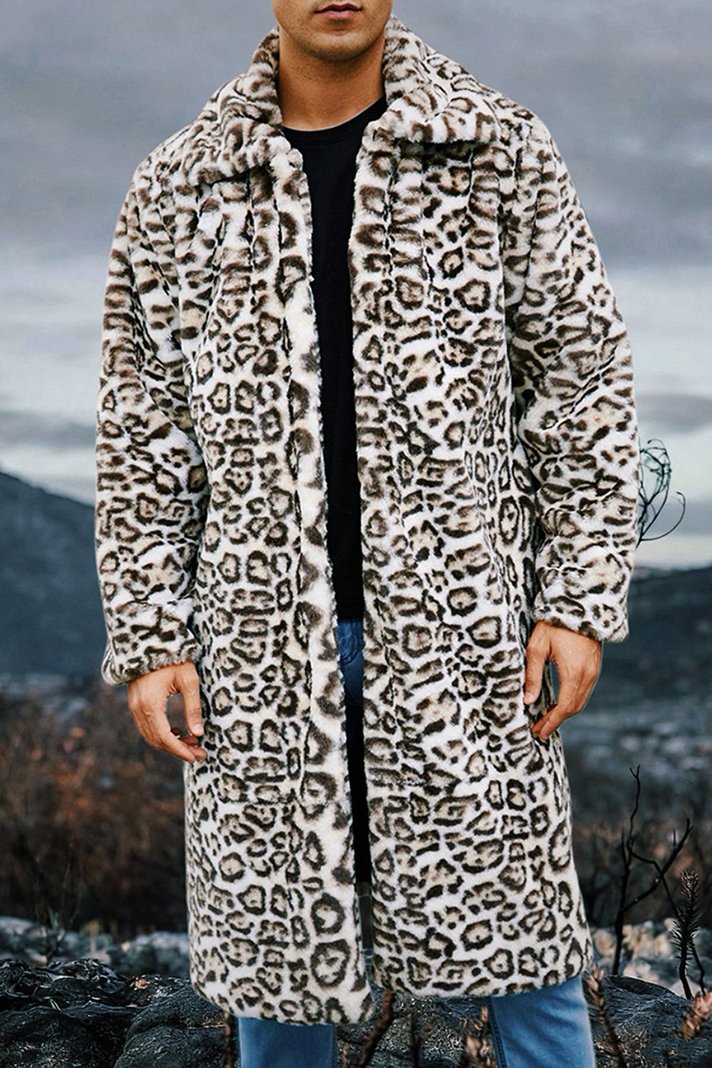 Piel sintética de leopardo marfil Abrigo largo de hombre con bolsillos