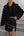 Abrigo negro esponjoso de manga larga de piel sintética con cuello redondo