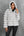 Abrigo gris con capucha y cremallera de felpa de leopardo