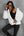 Abrigo de mujer blanco con muescas en la solapa con muescas delanteras abiertas