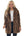 Abrigo de piel sintética peluda de color marrón y gris con solapa con muesca midi
