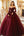 Vestido de fiesta burdeos Vestido de quinceañera con apliques de hombros fríos y mangas 3/4