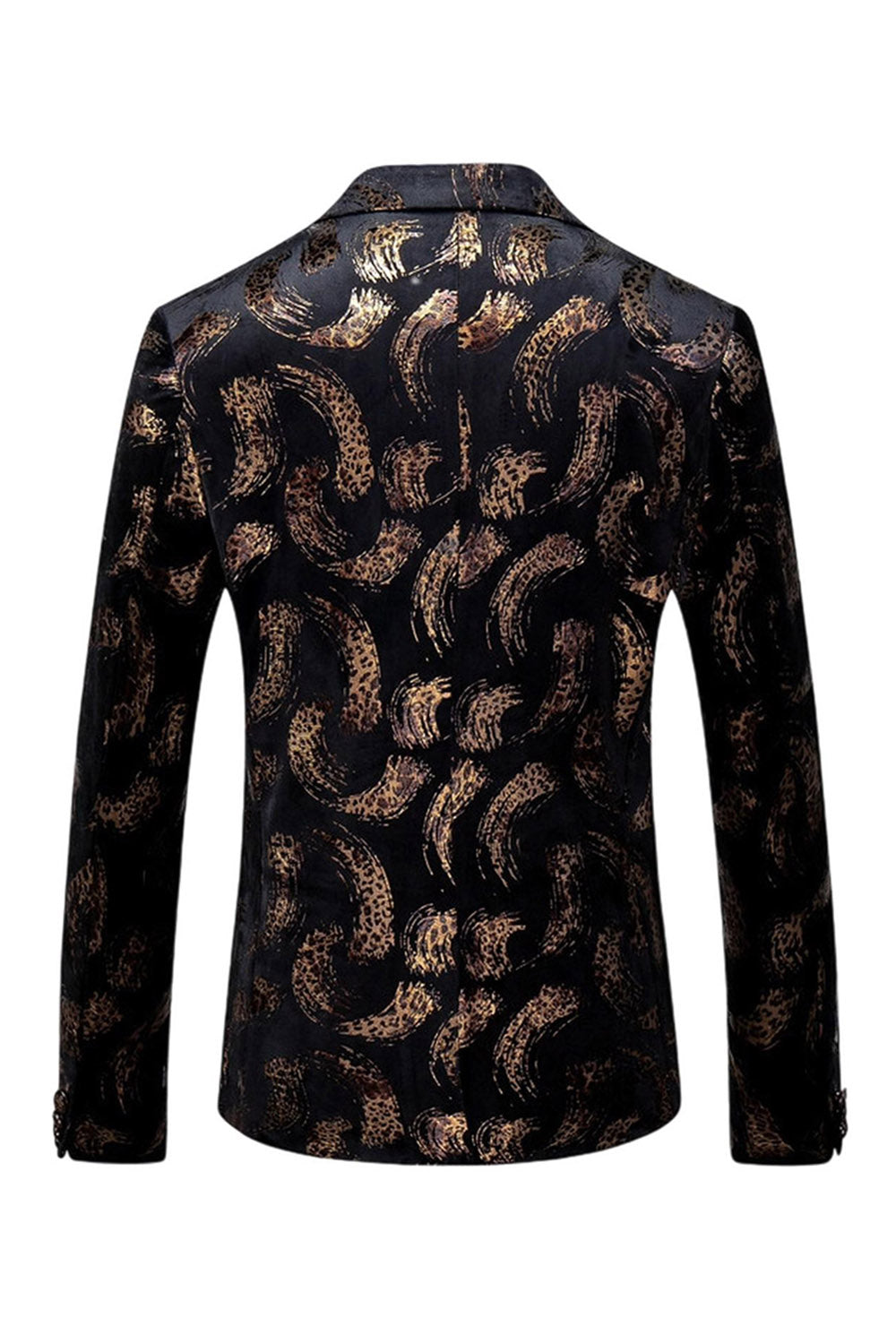 Blazer de baile con solapa con muescas estampada en oro negro para hombre