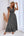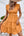 Vestido de verano con estampado verde naranja con abertura y hombros descubiertos
