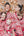 Vestido midi de 1950 con cuello barco estampado en rosa negra