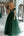 Vestido de fiesta largo con tirantes finos con tirantes de color verde oscuro con abertura