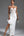 Corsé de vaina blanca Tirantes de espagueti Vestido de fiesta de encaje con abertura de volantes