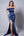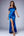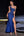 Vestido formal largo plisado azul real con escote en V y cuello en V