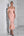 Vestido de fiesta fruncido con abertura y hombros descubiertos rosa gris