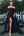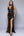 Vestido de fiesta negro con abertura y manga corta con cuello en V