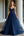 Un vestido de fiesta azul marino con volantes de novia de línea con abertura delantera