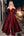 Borgoña Una línea con hombros descubiertos Vestido largo de satén de fiesta