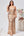 Un vestido de fiesta de lentejuelas doradas con tirantes de espagueti con abertura
