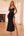 Vestido de fiesta largo con abertura y correas de espagueti de sirena negra brillante con correas de espagueti