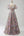 Vestido de fiesta largo con corsé largo con volantes en espiral y niveles gris rosa con apliques