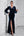 Vestido de fiesta largo azul marino con cuello redondo y mangas largas