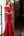 Vestido de fiesta de sirena con flecos en la manga hueca de un hombro rojo brillante con abertura