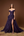 Elegante vestido de fiesta largo de línea A con hombros descubiertos morados y abertura