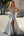 Vestido de fiesta sirena gris azul corsé con cuentas y abertura