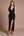 Vestido formal largo de satén sin tirantes fruncido de sirena negra con encaje