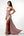 Vestido de fiesta sin espalda halter de satén rubor con abertura lateral
