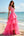 Vestido de fiesta largo largo con escote en V con cuentas de color rosa intenso
