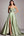 Vestido de fiesta de satén metálico con tirantes finos de vaina dorada