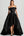 Vestido de fiesta negro con volantes de satén con cuello en V