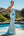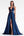 Vestido de fiesta largo con escote en V y azul pizarra con bolsillos