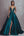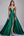 Vestido de fiesta largo de satén fruncido verde oscuro con hombros descubiertos