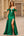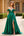 Vestido de fiesta de tirantes finos de satén verde oscuro con abertura