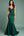 Vestido largo de fiesta con tirantes de satén verde oscuro