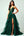Vestido de fiesta largo de satén con cuello en V de encaje verde oscuro
