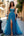 Vestido de fiesta largo de satén con tirantes de espagueti azul A