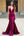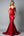 Vestido de fiesta largo sin espalda de sirena rojo oscuro brillante