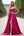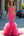 Vestido de fiesta largo sirena de cuello cuadrado fucsia con abertura