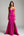 Vestido de fiesta largo de línea con cuello cuadrado fucsia y abertura
