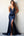 Vestido de fiesta sin tirantes de línea con cuentas azules con abertura