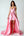 Vestido de fiesta largo con tirantes de espagueti rosas de una línea con cola