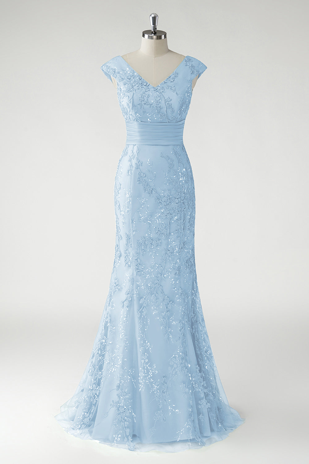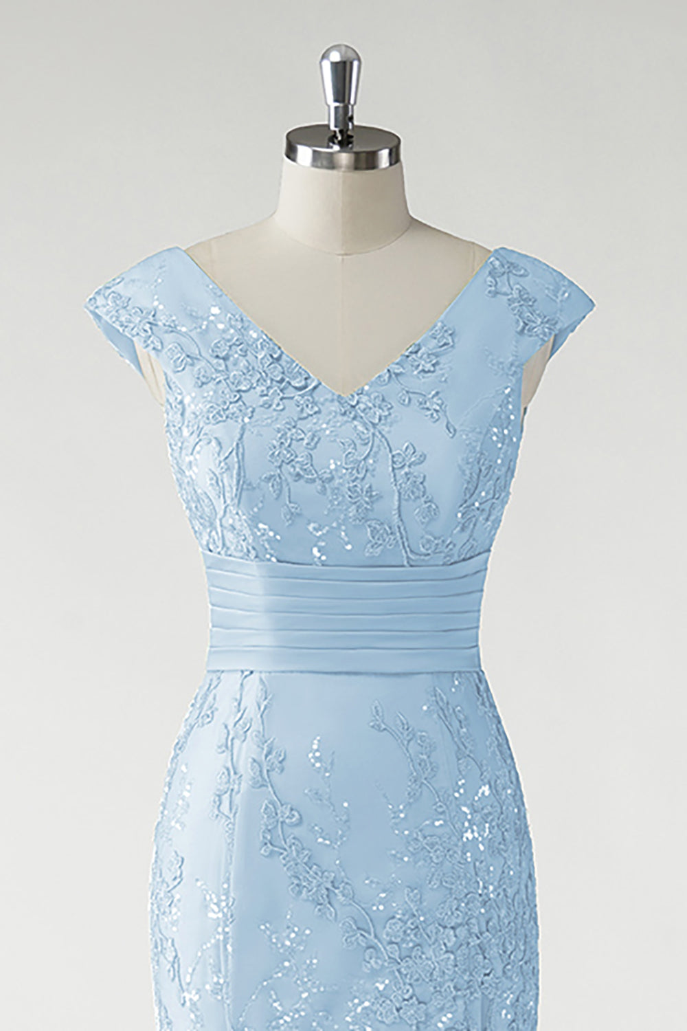 Vestido de Fiesta Sirena Verde Escote en V Mangas Cortas Lentejuelas Brillantes