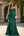 Vestido largo de satén de satén de talla grande de sirena verde oscuro con hombros descubiertos y abertura