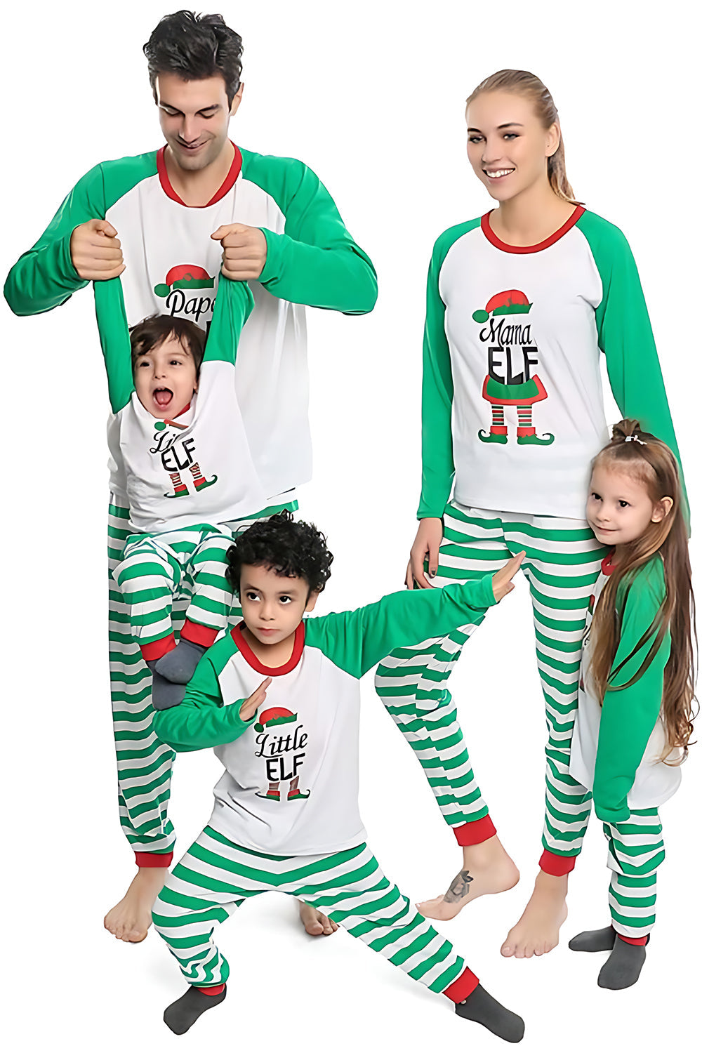 Conjunto de pijamas a juego con estampado de rayas verdes para la familia