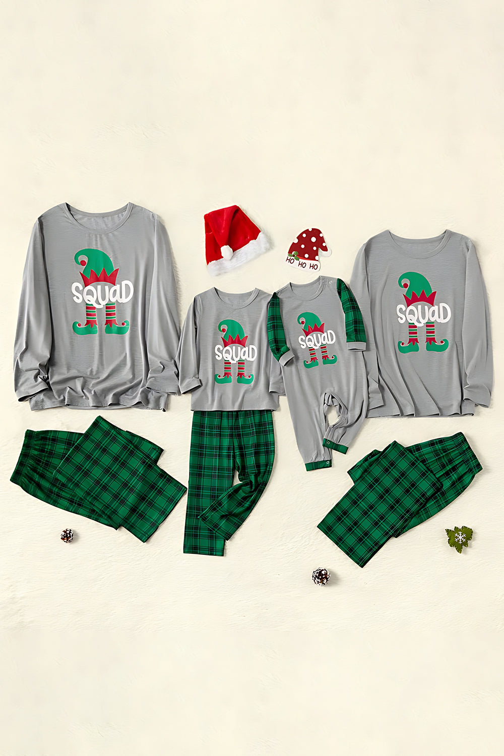 Conjunto de pijamas a juego para la familia con estampado a cuadros gris verde