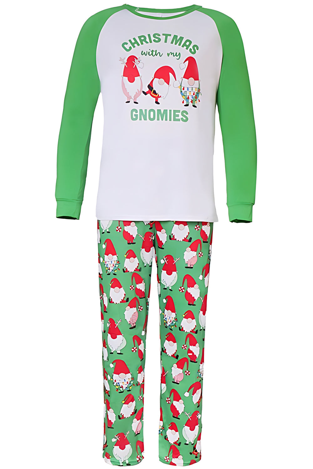 Pijamas familiares de manga larga estampados en verde a juego