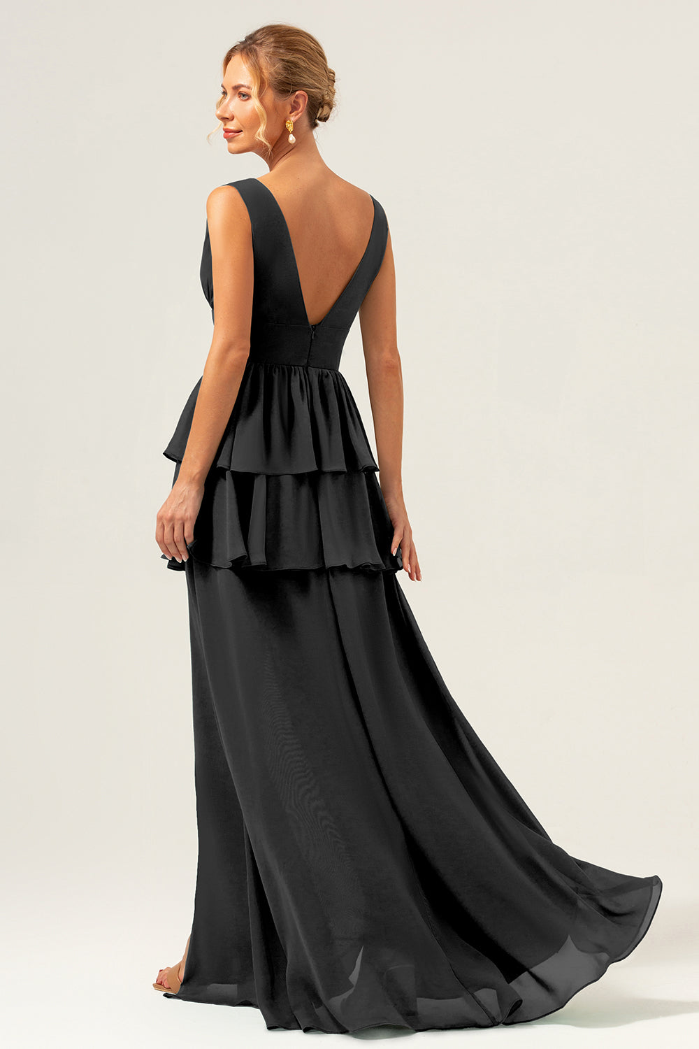 Vestido largo de dama de honor con volantes y volantes de Eucalyptus A Line