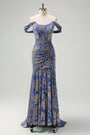 Vestido de fiesta largo de terciopelo quemado verde oscuro con mangas cortas