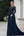Vestido Sirena Azul Marino Volante Fluido Mangas 3/4 Gasa Madre de la Novia