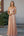 Vaina de satén verde oliva mate con hombros Vestido de la madre de la novia con cinturón